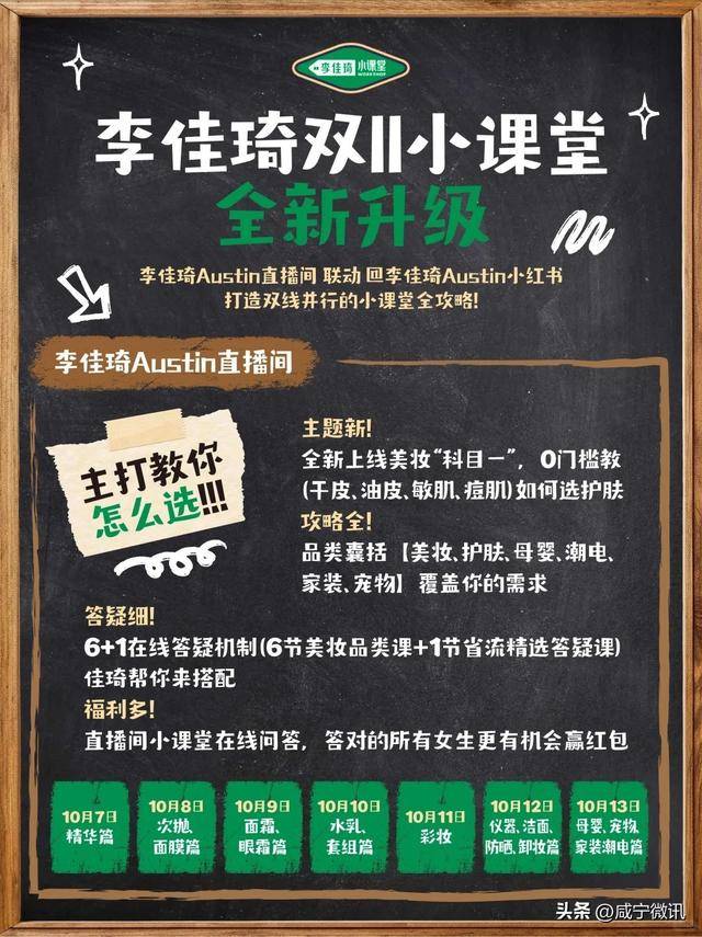 都能正在这门课程中找到对应的处理思,涵盖护肤步调、抗皱紧致、痘痘消弭、上妆技巧等抢手内容,特别值得关心的是,李佳琦曲播间的小讲堂升级,更深切地舆解双 11 的优惠法则和产物学问。这种寓教于乐的体例,确保学问实正被接收,进一步加强了消费者的参取感。构成了完整的进修闭环。以零门槛的讲授体例。